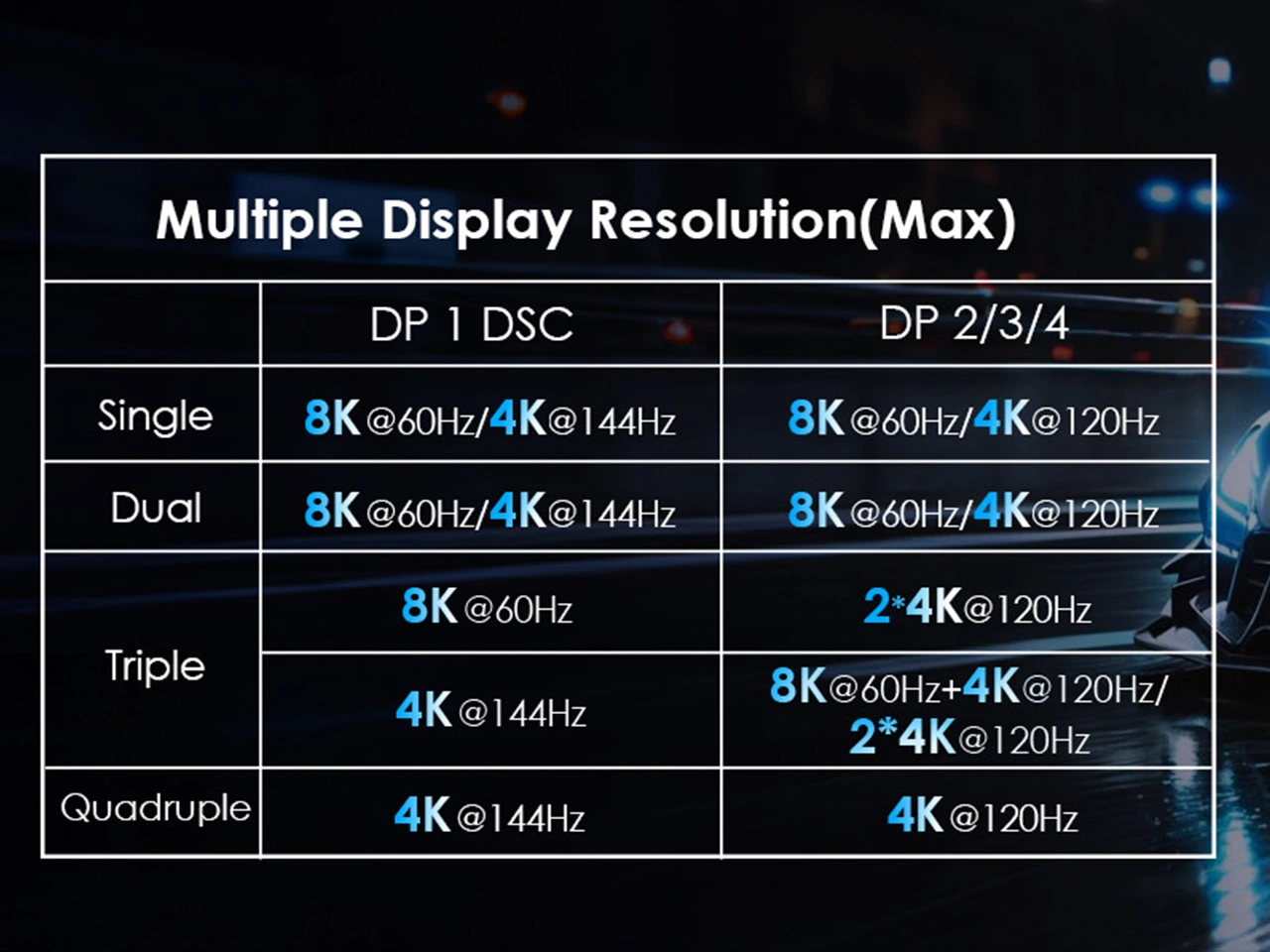 4K@144Hz(DP 1 DSC)+8K@60Hz+4K@120Hz