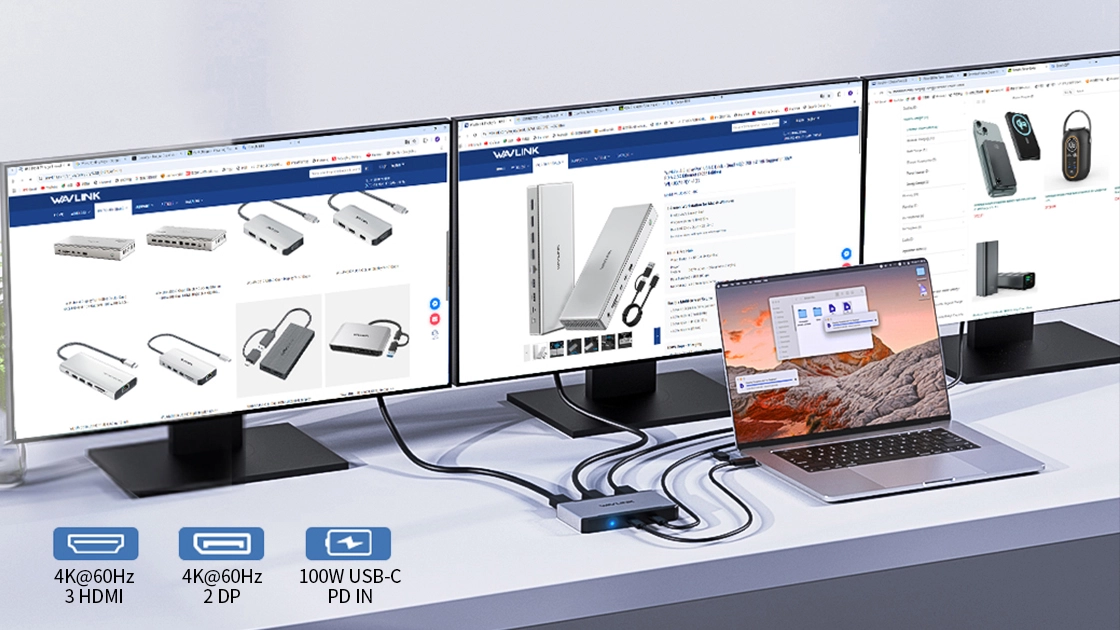 WAVLINK USB-C/A to HDMI/DP Triple 4K@60Hz Docking Station – Power Redefined, Clutter Erased