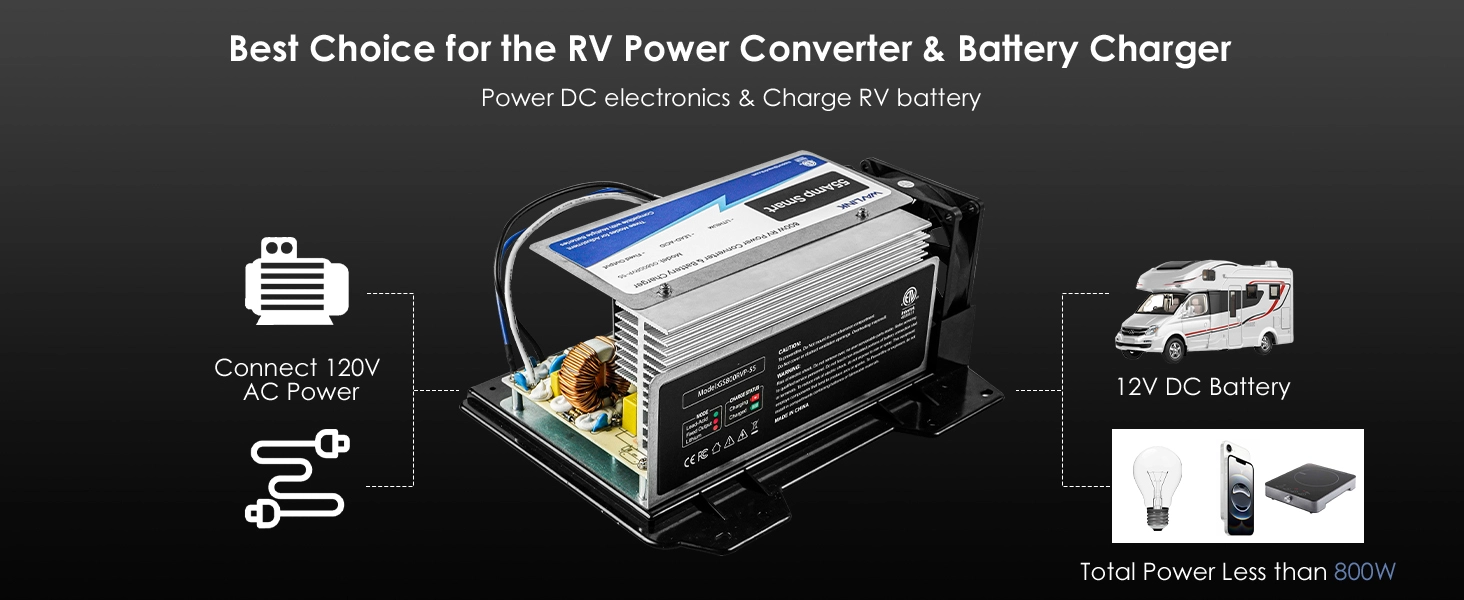 [Elevate Your RV Power System with Our Advanced Converter] Unleash the potential of your adventure with our cutting-edge RV power converter. It effortlessly transforms standard 120V AC into a stable 12V DC power source, perfect for charging batteries or running essential devices on the go. Tailored for various RV battery types, including lead-acid and lithium options, this converter is an indispensable companion for your travels. (Batteries not included)