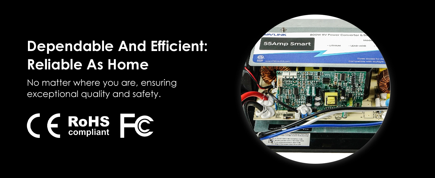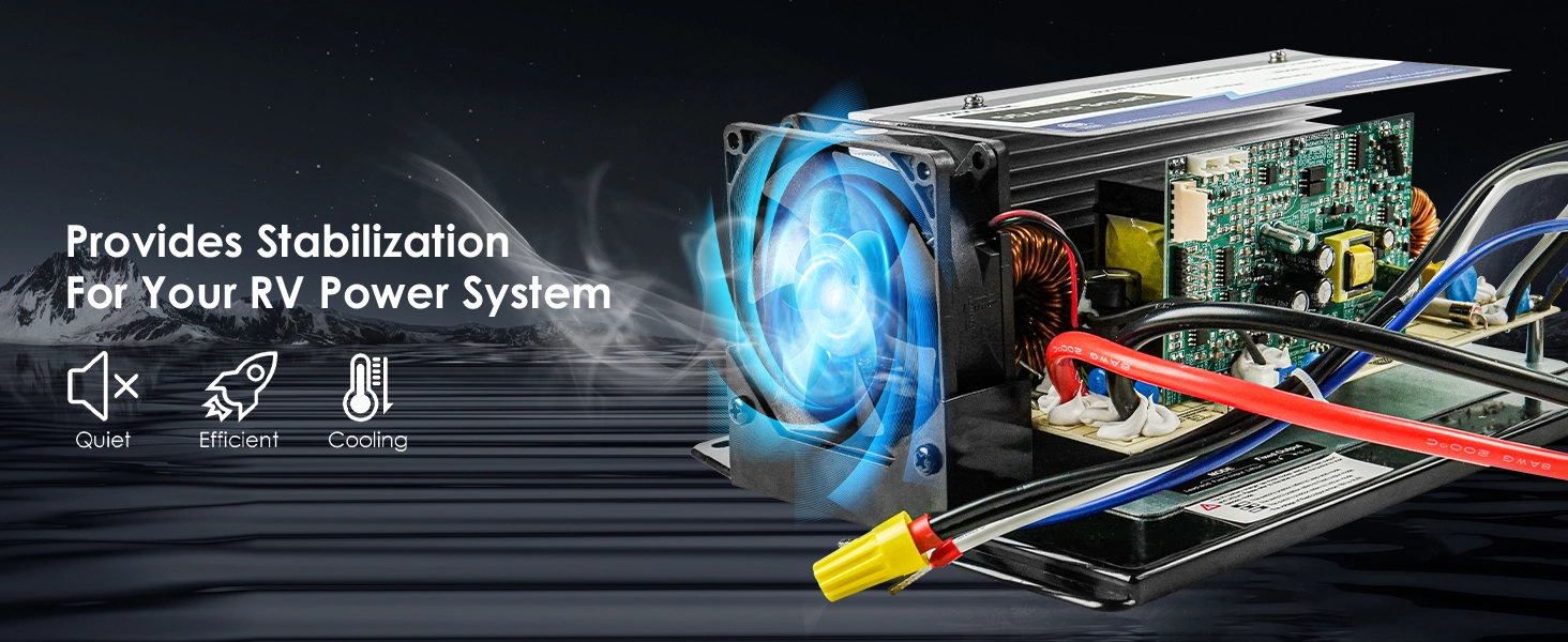[Powerful 55A Output for Ultimate Performance] Delivering up to 55A of pristine current, our RV power converter effortlessly fuels all your onboard electronics and appliances, ensuring a comfortable journey every time. Ideal for smaller RV batteries, this converter ensures seamless operation of all your devices.