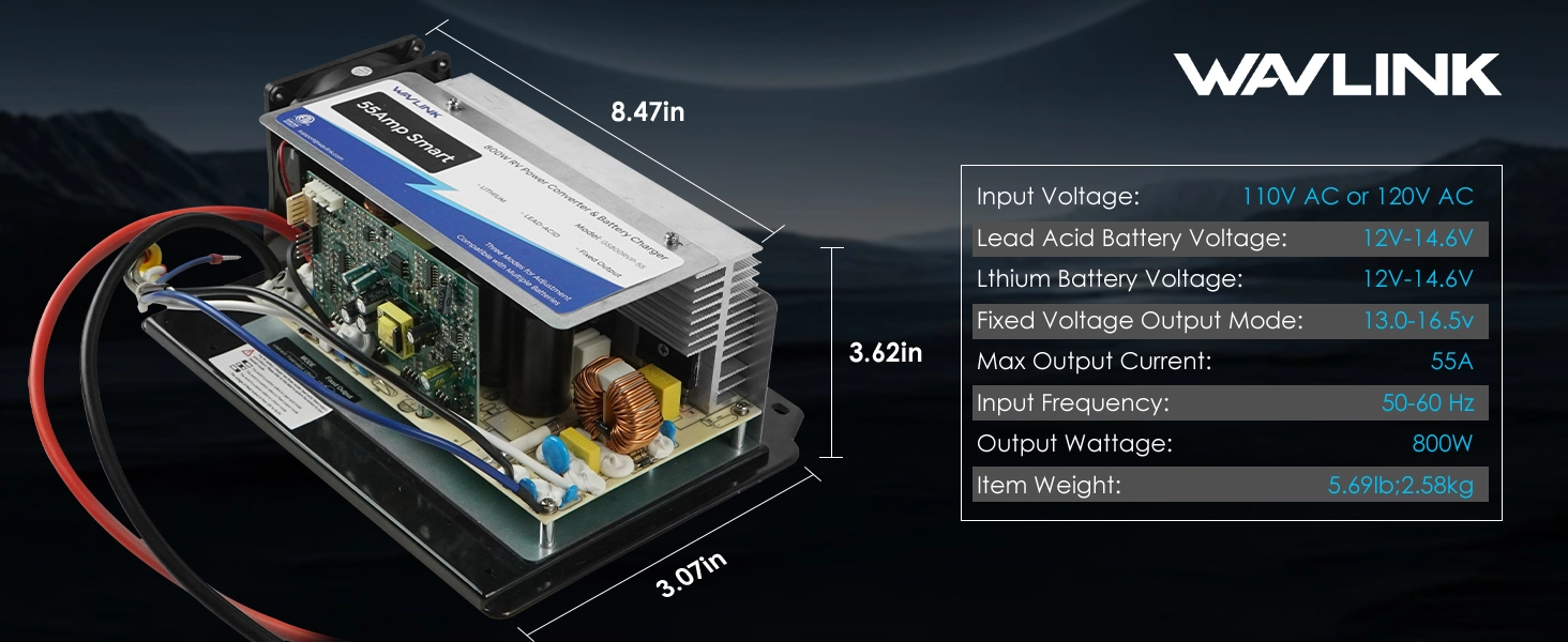 WAVLINK 55Amp RV Power Converter GS800RVP-55