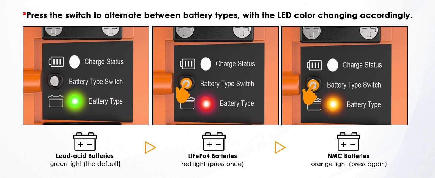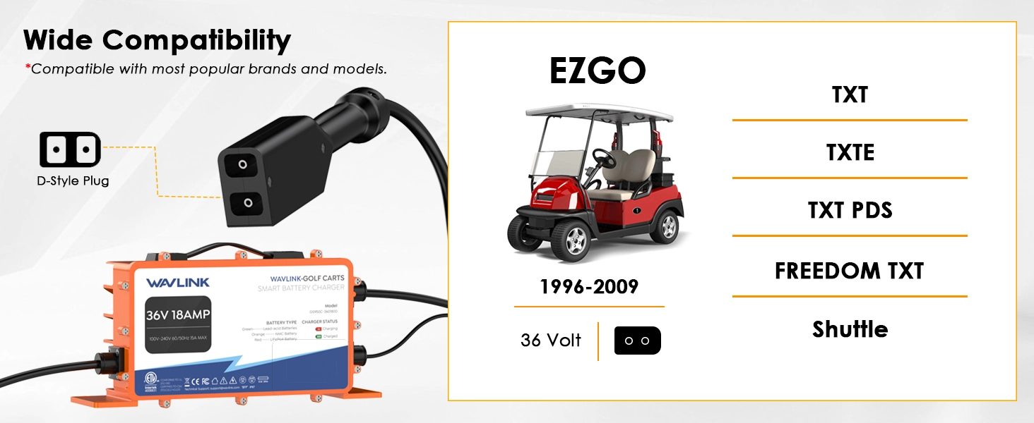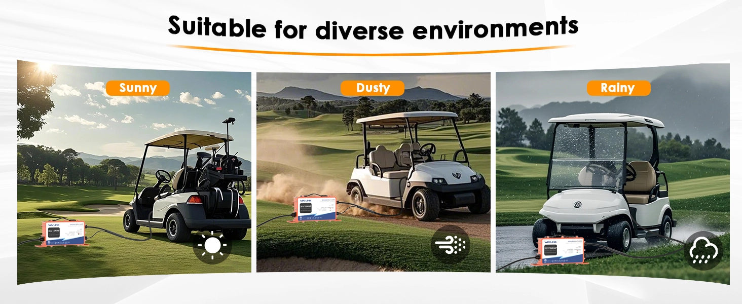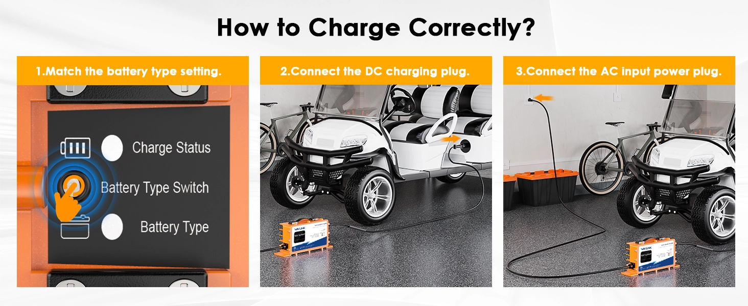 【Versatile Battery Compatibility】 Compatible with lead-acid, lithium iron phosphate (LiFePO4), and ternary lithium (NMC) batteries, supporting both OBC (Onboard Charger) and non-OBC carts. Before charging, always verify the battery type and voltage for optimal performance. Whether you have a traditional lead-acid or modern lithium battery, the GS950C ensures safe and reliable charging.
