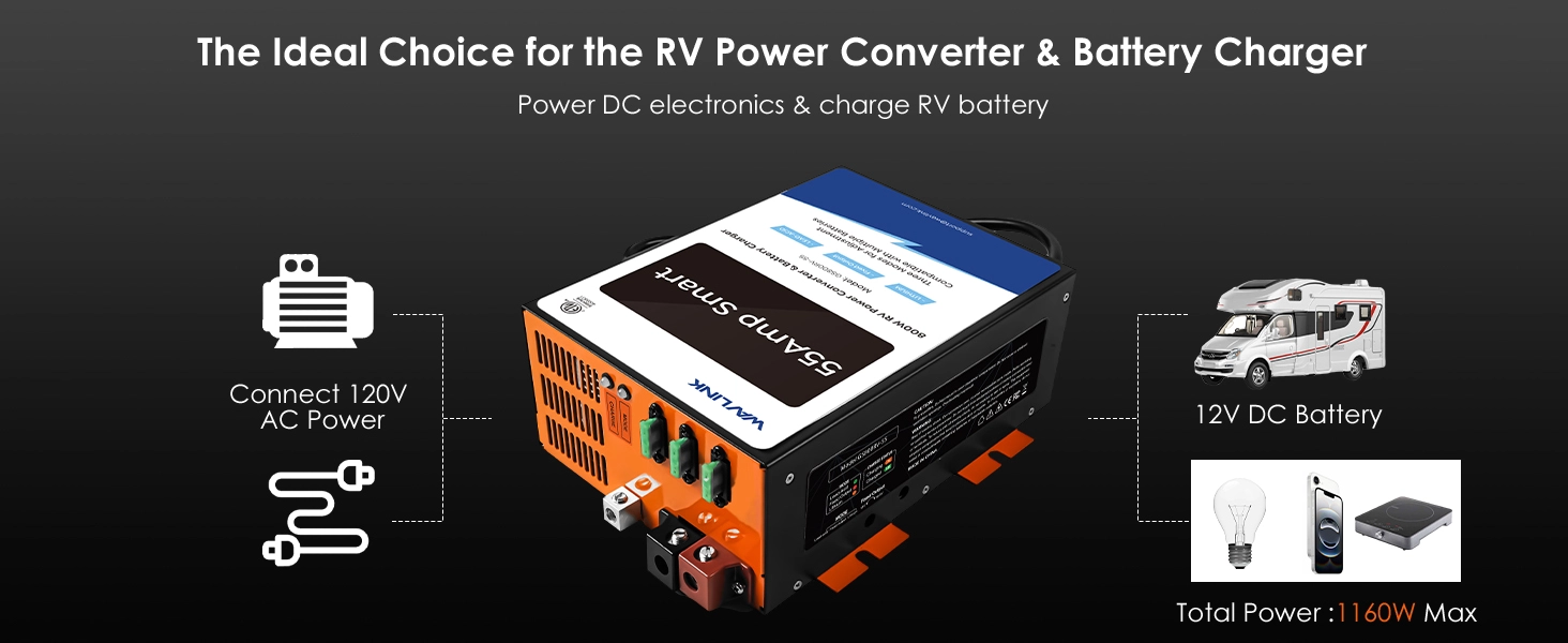 80 Amp, 120V AC to 12V DC, Smart Lithium Battery Mode, Lead-Acid Battery Mode & Fixed Voltage Mode, Adjustable 13V-16.5V Voltage Compatible with Various RV Batteries